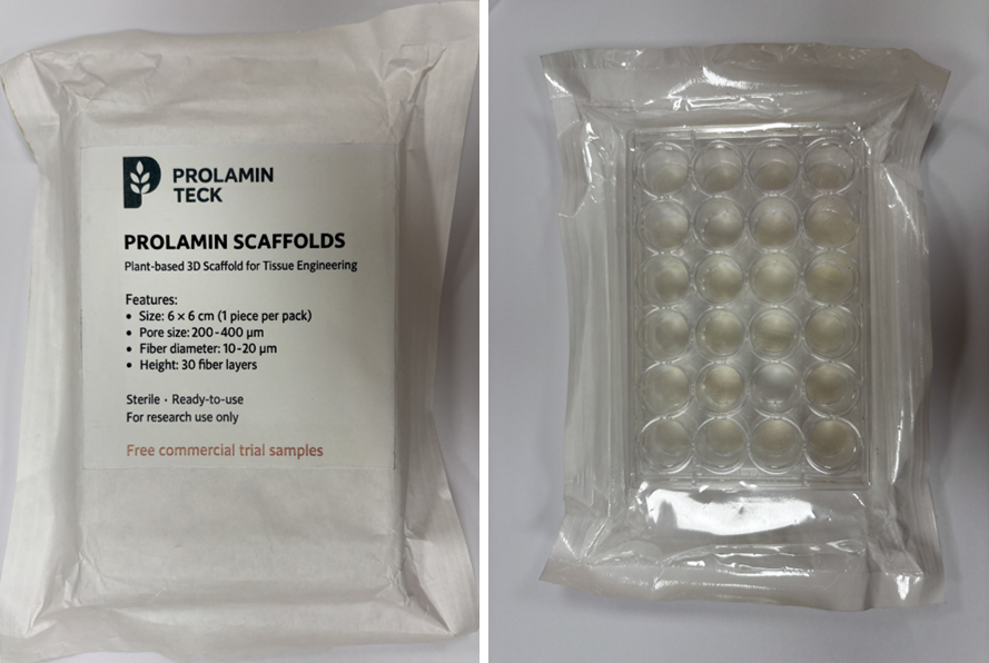 Prolamin Teck creates 100% plant-based 3D-printed scaffolds that boost cell growth (100X), enhance tissue formation, and offer tunable degradability for biomedical and cultivated meat applications